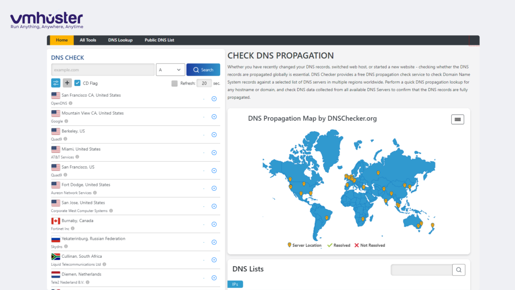 Use online tools like DNSChecker.org or WhatsMyDNS.net to verify your domain’s DNS propagation globally.